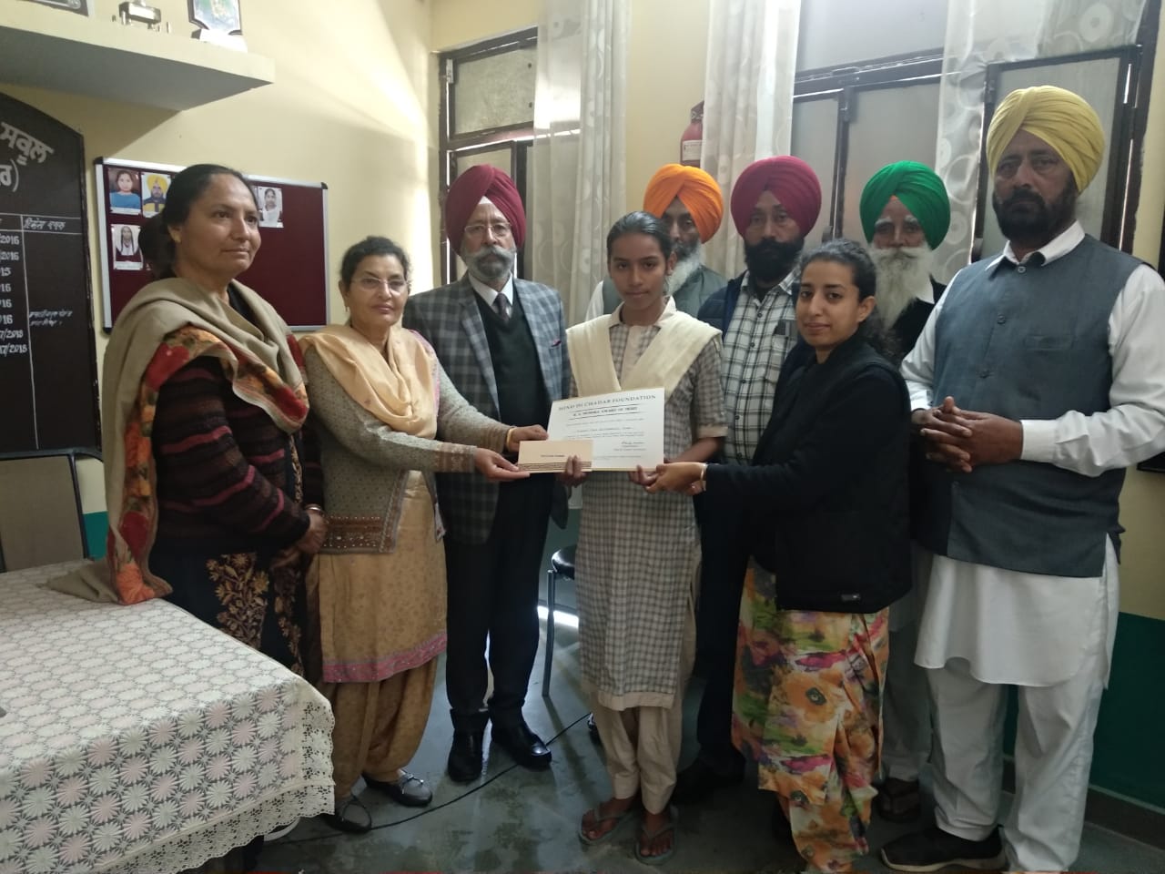 - The Trusties of Hind Di Chadar Foundation conferring B S Mundra Award of Merit with cash award to the meritorious students of Govt. Senior Secondary Smart School, Chanauli Bassi, Distt. Rupnagar in the presence of Principal Kuldip Kaur, Chairman, School Management Committee: S. Bhupinder Singh, Sarpanch: Badal Singh Bassi and other dignitaries.